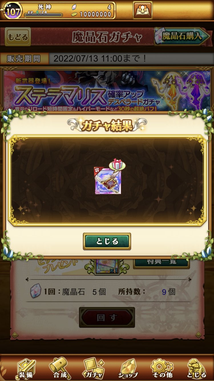 Web ログレスダルシェでやっちゃいけない!「初見さんは気を付けて」(再アップ版) 1ヶ月前 ログレスガチャアナザーコスモ&ヴァニタスジョブ別確率アップ410個分結果 1ヶ月前 ログレスチケットガチャサブキャラの結果です 2ヶ月前Web ログレスを 攻略していく場合、 キャラ、というか、 ジョブよりも、 武器が、とても重要です。 なぜなら、 武器の強さによって、 キャラの強さが、 大きく変わるからです。 そして、それが、 攻略に大きく 影響してきます。 そして、強い武器を 手に入れるには、 やはり、ガチャ、なんです